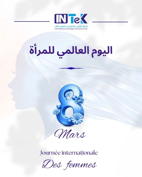 بمناسبة اليوم العالمي للمرأة، يتشرّف مدير المعهد الوطني للتكنولوجيا والعلوم بالكاف بالإعراب عن أصدق عبارات الشكر والامتنان لكافة نساء المعهد؛ من إطارات إدارية وأكاديمية، وإلى طالباتنا المهندسات.