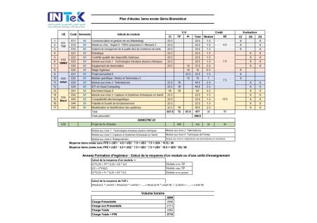 diplôme national d’ingénieur en sciences appliquées et technologie en Génie Biomédical » dure 3 ans. Les enseignements sont répartis sur les trois années d’études conformément au plan d’études ci-dessous. Dans le cycle de formation d'ingénieur en génie Biomédical, les